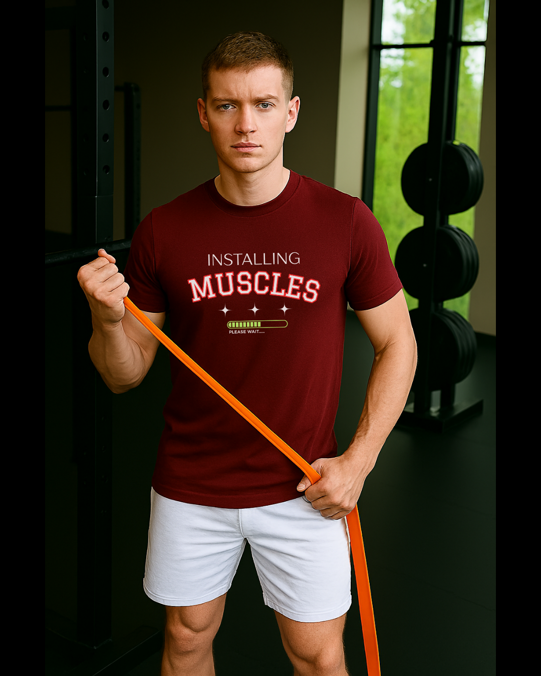 Level up your gym game with this ultra-soft, breathable cotton T-shirt that’s as cheeky as it is motivating. Featuring a high-impact graphic print of a loading bar labeled “Installing Muscles”, this tee is perfect for those who lift with humor and hustle.