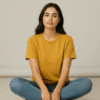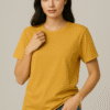 The rich mustard hue adds a pop of color that’s perfect for pairing with jeans, shorts, or joggers. Whether dressing up for a casual outing or keeping it simple at home, this versatile tee brings energy and style to every look.